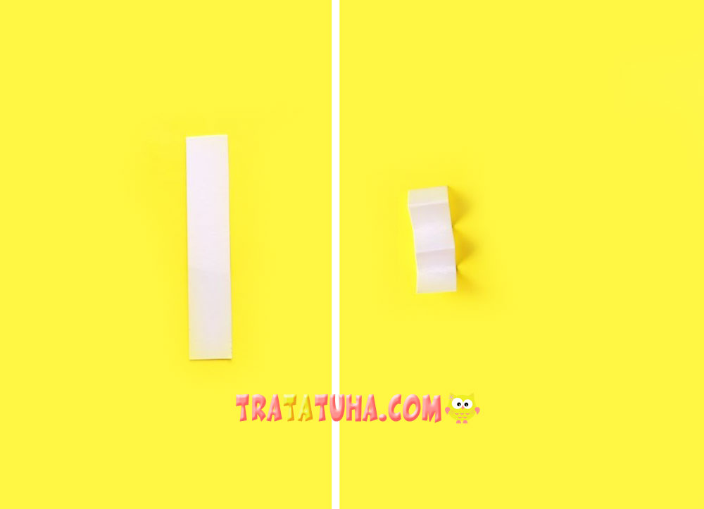 Fold the strip like an accordion. To do this, bend the edge, smooth the fold slightly, then turn the strip over and make another fold. The neck should not be too long — about two folds is enough. If there is any extra part that makes the neck too high, trim it with scissors.